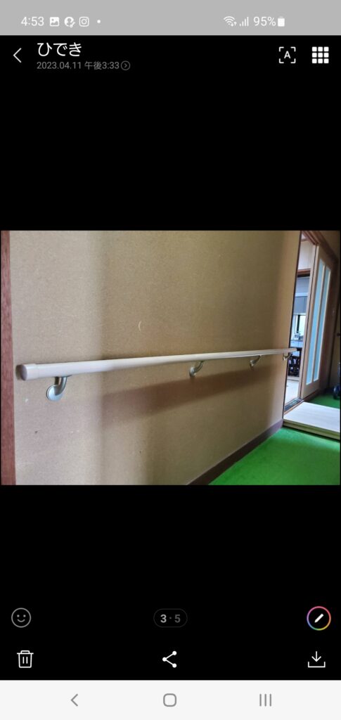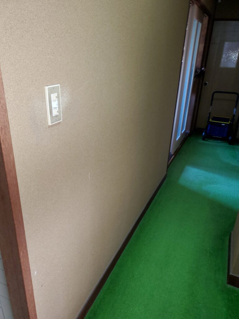 廊下の段差がキツイ。手摺が無いと怖い。この開き戸、引戸だったら良いのになー!